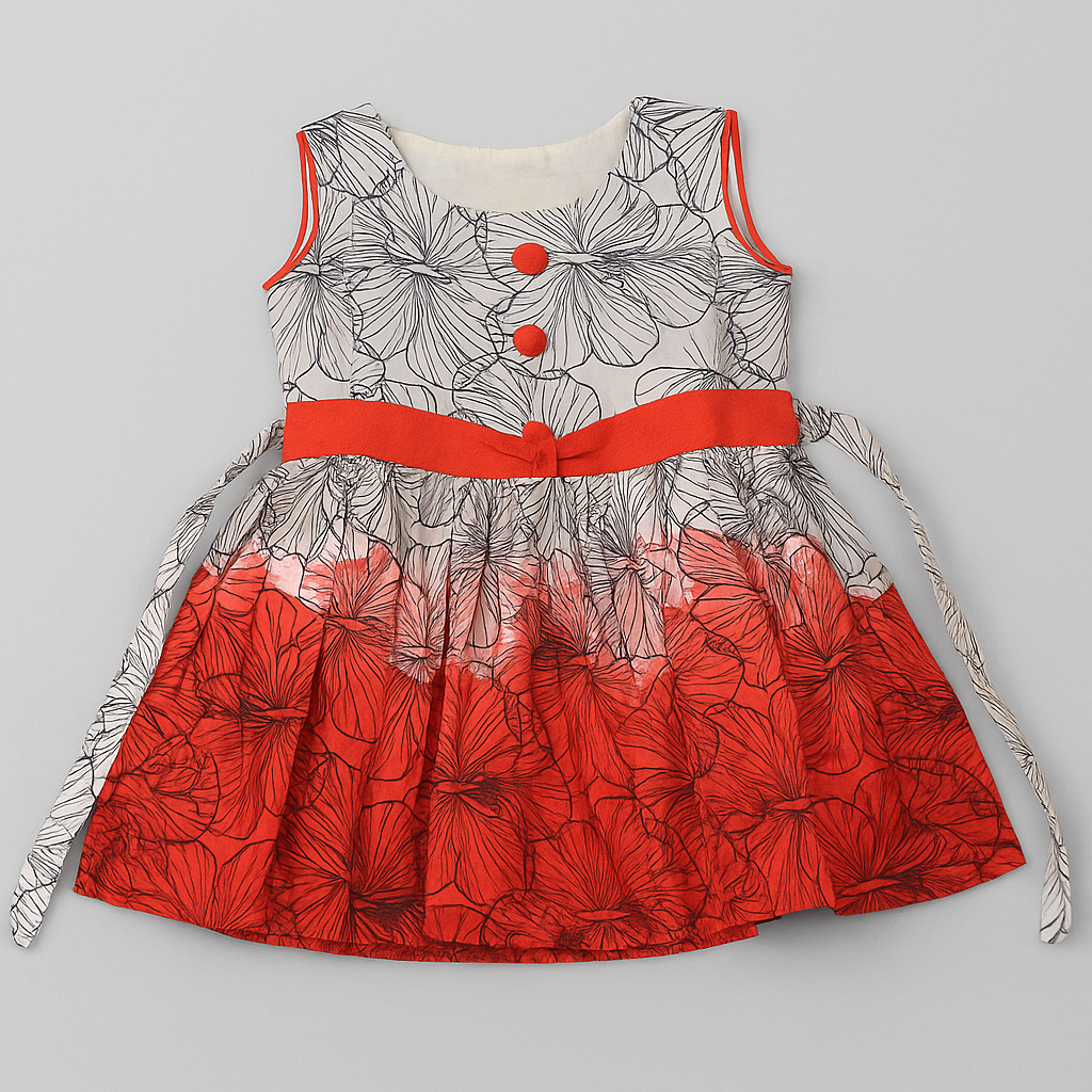 Girls’ Sleeveless Floral Party Frock – White & Red